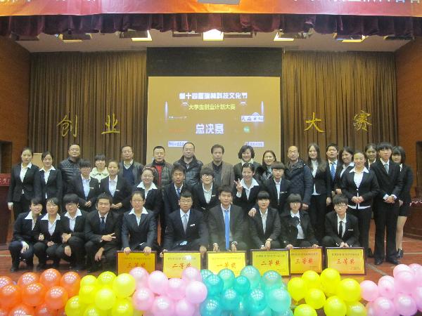 2014年12月24日下午4:00,西安文理学院第十四届科技文化节大学生创业计划大赛决赛在明德楼A区报告厅举行。副校长韩权、校团委书记成瑶、物电院党总支书记杨军、文化与旅游学院书记骆尚利、思政部党总支副书记巩建萍、文化与旅游学院党总支副书记杨燕华、商学院党总支书记张剑萍、副书记李晓煜、陕西省创业俱乐部主席团等作为嘉宾参加本次比赛。担任此次大赛的评委有:教务处副处长徐东升、校团委教工团总支书记王莉、商学院院长张丹、商学院教学副院长徐寄鸿、商学院教学副院长刘鸿明、商学院教师吴琦。