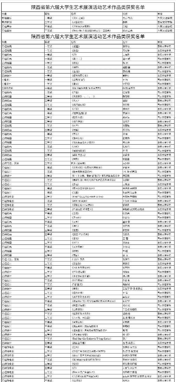 省教育厅组织专家对各高校上报节目、作品和案例进行了认真评选,我校学生在此次活动中,获得一等奖12个,二等奖29个,三等奖41个,我校教师在此次活动中,获得优秀指导教师45个。以下是我校获奖艺术作品汇总名单